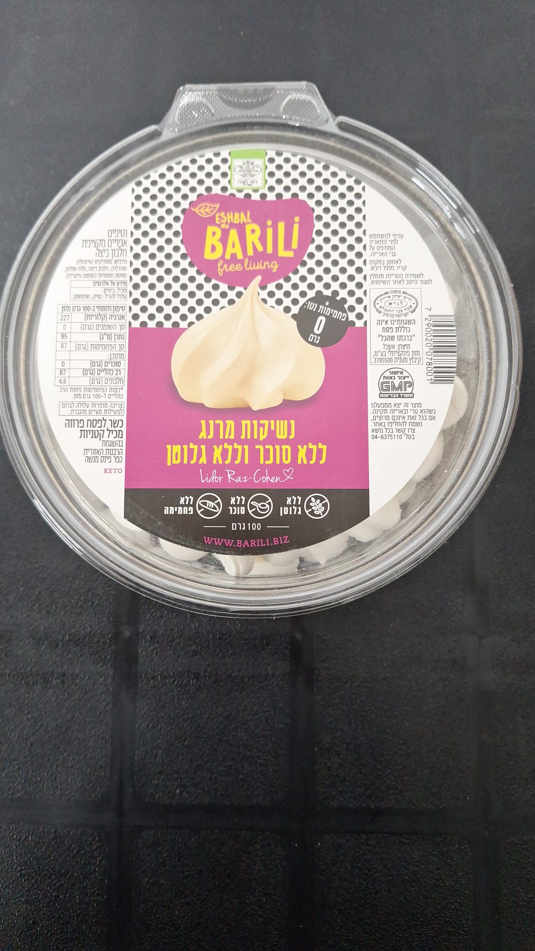 כמות של ברילי נשיקות מרנג ללא סוכר ללא גלוטן ללא פחמימות 100 גר